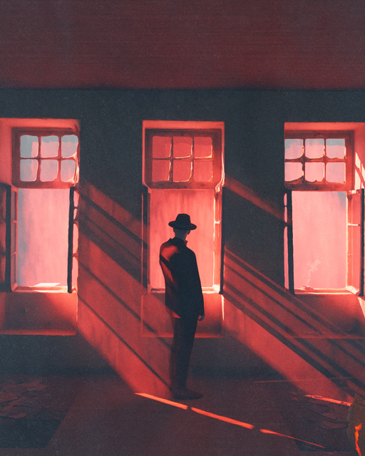 Slow Hours, the first illustration in a series of a lonely detective in spaceGet signed prints at my shop!