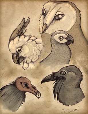 A quick study of different kind of birds, mostly for Di Immortales. According to my story, the Gods have the ability to transform into one different animal form; the form that the mortals usually associate with them.From left to right, top row: Zeus as an Imperial Eagle, Athena as a Barn Owl, Hera as a Peacock, Ares as a Griffon Vulture. Bottom row: Hephaestus as a Demoiselle Crane, Apollo as a Hooded Crow, and Aphrodite as a Mute Swan.