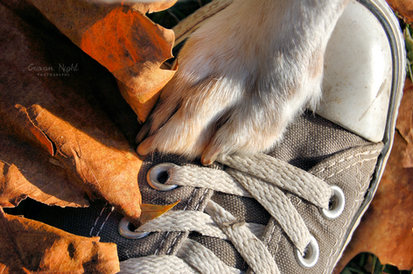 No matter it's end of autumn. Leaves are still fallingGerman shepherd's paws (Libra).