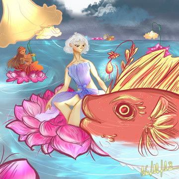 In Buddhism Lotus is associated with purity, spiritual awakening and rebirth for its ability to rise from the mud, bloom out of the darkness and radiate into the world.This piece I did for a daily challenge back in February. I gotta admit I ventures quiteee faraway from the original idea- which is Buddhism. But it got thing done, in the end.
