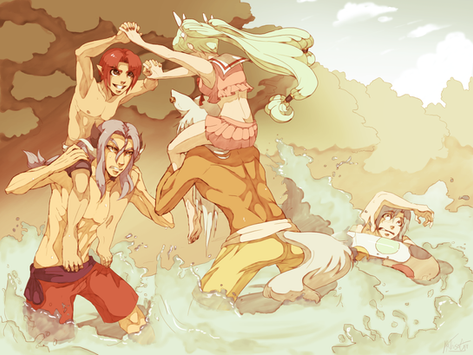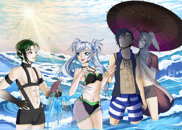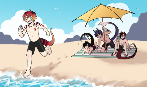 Tai and Kopheru spending a day at a protected beach to play with their kids :V//It's not autumn yet so more summer stuff yes.