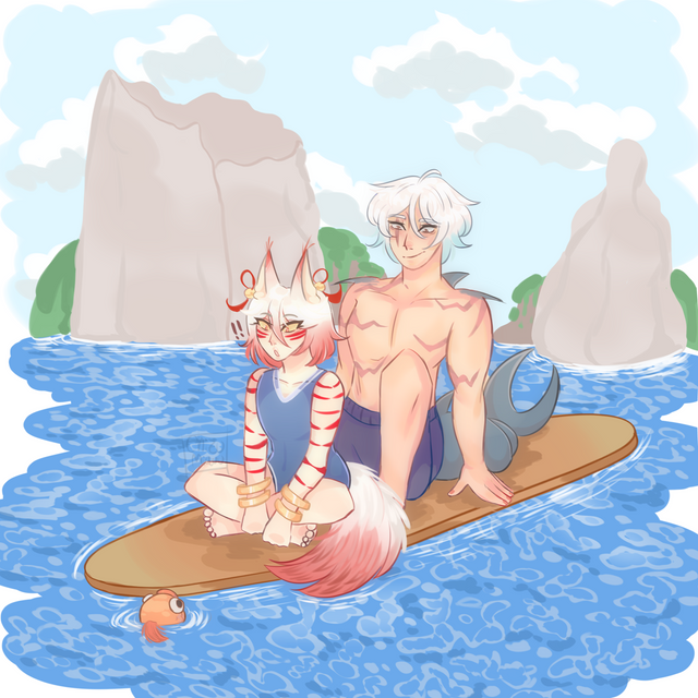 #beach #dogdemon #family #kids #ocean #summer #kemonomimi #malecouple