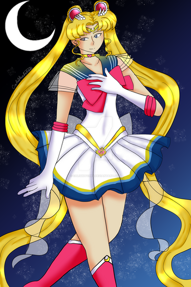 Take your senshi or girl version of your knight and create a Crystal Sailor Starlight! Use their colours for accents, and make up a name using one of your character's virtues/ideals or powers.