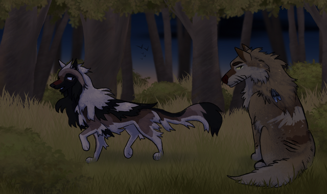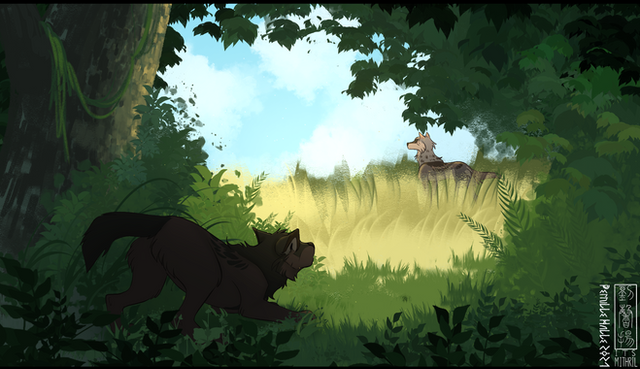 You have heard about the rash of thefts, and make your way quickly to the nearest village - Falconry Village. As you are approaching the village itself, an unfamiliar scent catches your nose. Against your own better judgment you follow it off of the path, making your way into the woods. A small gully leads down to a stream, still unfrozen. You stop at the top, looking down upon a strange scene. A wolf squats below, struggling to make a fire. It’s hard to make out through the undergrowth, but it looks as if something is wrong with their forepaws - they do not move well, and tremors come over them every few seconds as they struggle to strike the flint. After a moment they glance up, their eyes locking upon you. They slowly raise a toe to their lips in a shushing motion, before turning and vanishing into the trees, abandoning their flint and steel. The wind shifts and a strange sickly, metallic scent washes over you, coming from the stranger themselves.