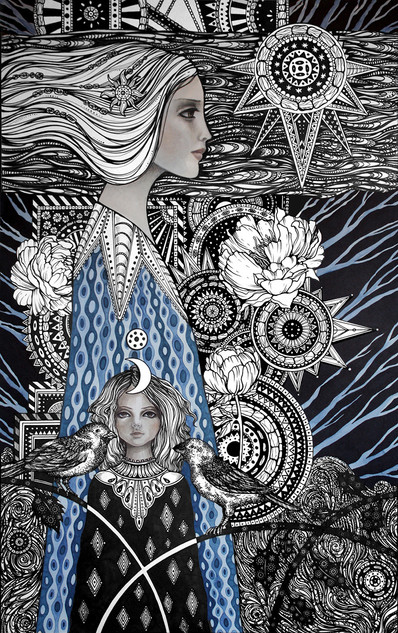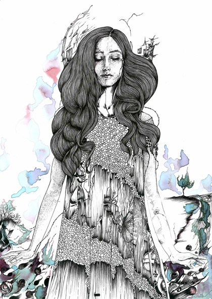 This is beautiful I especially love the attention to detail within the line work. The use of space is amazing and really leads the eye to the center of the piece.