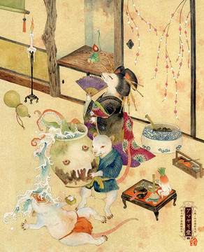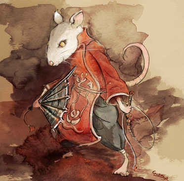 This is one of the best comments I have gotten on this piece. Thank you so much for the insight, I find it fascinating. The original of this piece was actually done by Warwick Goble. This is a reproduction of his work, "The Espousal of the Rat's Daughter". I've never actually read the story that goes with it, but I think I read it was inspired by Japanese lore. I've always thought the female rat was being wed off, possibly to the more nobly dressed rat? Or maybe being escorted to meet her to-be husband? I'm not sure about the more commonly dressed one. But it makes me want to know more about the story.