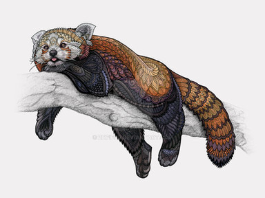 Just practicing with some colors I don't normally use. Been wanting to do something with Red Pandas forever since they're so adorable. This print, totes, and pillows are now available at my Society6 storeMy Facebook