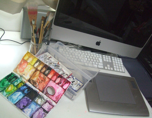 Bored today! So I decided to upload some images of where I work. I always love seeing them from other artists.Working on something new too.
