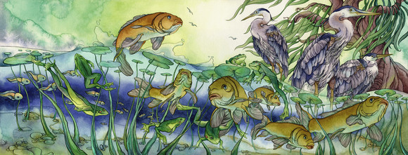 The glass bowl is for my water and underneath it is actually a plastic box of little trays for beads, except I use it as a palette for watercolor. Each color gets its own tray. ^^