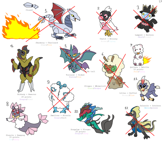 ground, fire, fairy, water, flying, normal rock, electric, bug, grass, ice, steel