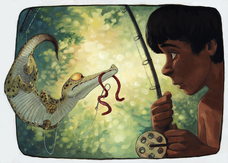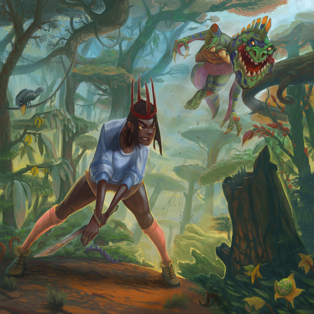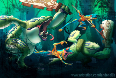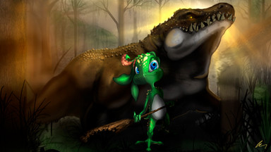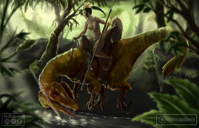 EstΓ‘ genial!! La iluminaciΓ³n y composiciΓ³n me encanta. El personaje y el dino brutales tambiΓ©n.