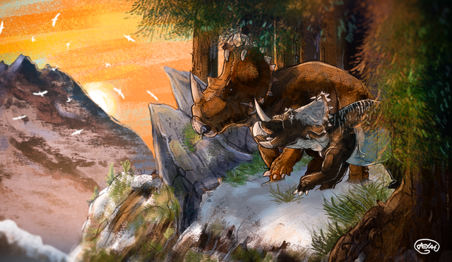 Step 3- Blocking out the basic colors. I won´t be considering the main figures in this stage.I just put the basic colors I want the scene to have roughly.In this case,since the world of Hans & Hannah is mostly desert,I choose orange,brown,yellow....