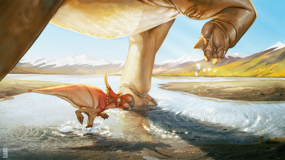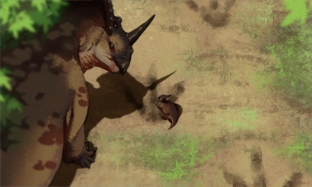 Step 5- As you can see here,I put some red on its shoulders and its face and some purple to make it more polychromatic.I also started to add some bounced light to iluminate the dark parts and give everything more volume.Remember that light bounces everywhere,so keep it in mind!!