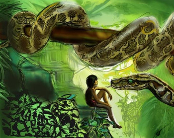 I like this so much! Recently I started looking up the jungle book and was intrigued to find that Kaa in the original novel, was quite heroic and a wonderful mentor to Mowgli. I remember seeing the Disney film and just remembered him as the creepy snake that wanted to devour Mowgli. It's amazing how Disney Disneyfies or should I say destroys other works of written art. I wish we had a Kaa like the one in the novel.