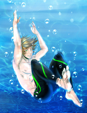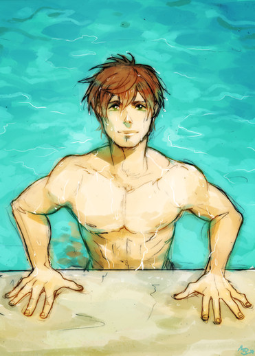 So here's Haruka mid-stroke, but I may have drawn him more beefier than he really is Oh well, I just hope you can tell it's him because I'm not sure how well I can translate anime characters into my style.