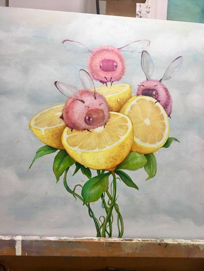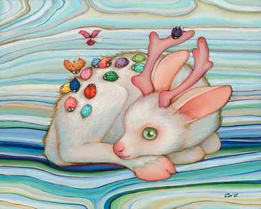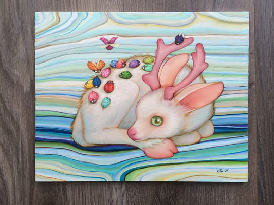#albino #deer #ladybug #oilonwood #oilpainting #workinprogress #popsurrealism #camilladerrico #popmanga