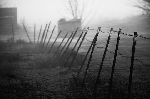 I love how the picture's centered on the fence! It's creepy. Very nice... Psh, i wish there were cool sites like that around here to take pictures of.