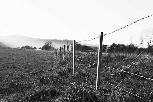 I like the composition with the fence in foreground but for me the framing is a bit strange ...you cut the tree, there's too much empty space at the top (the sky)