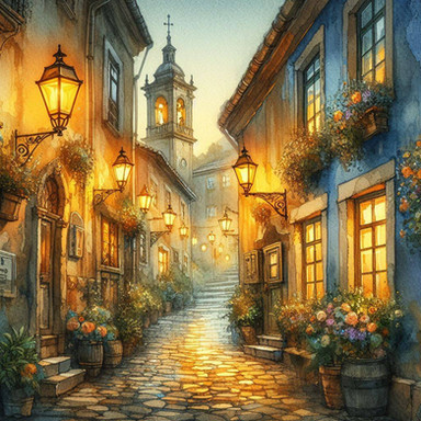 #cobblestone #colorful #digitalartwork #idyllic #illustration #impression #interpretative #peaceful #summertime #tranquil #village #wallpaper #aiartwork