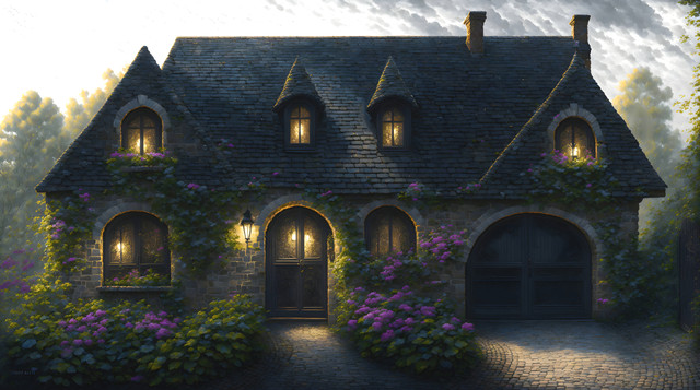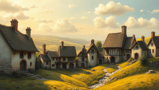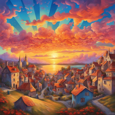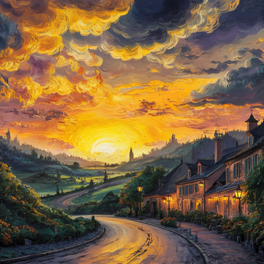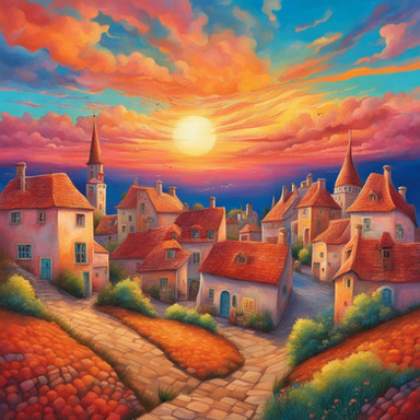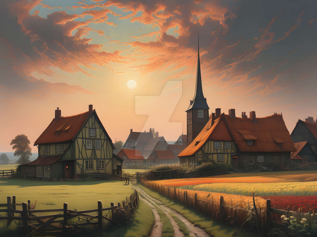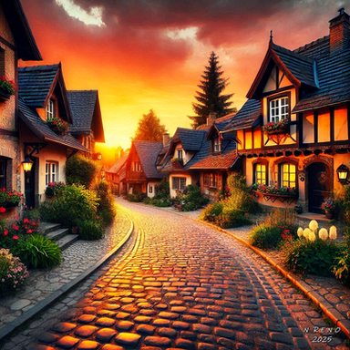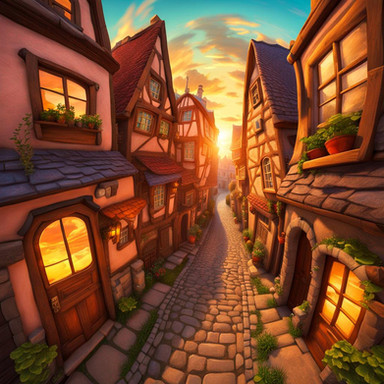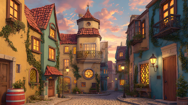 #cityscape #cobblestone #digitalartwork #idyllic #illustration #peaceful #summertime #sundown #sunset #tranquil #village #wallpaper #aiartwork
