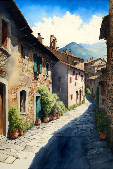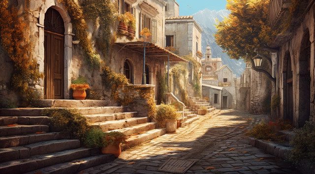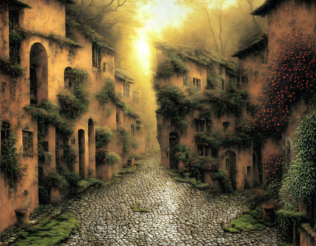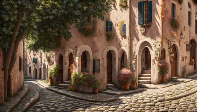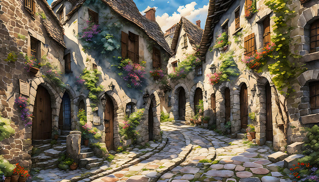 #idyllic #citylife #cobblestones #colorful #digitialart #illustration #peaceful #streetscene #summer #townscape #townscenery #village #wallpaper