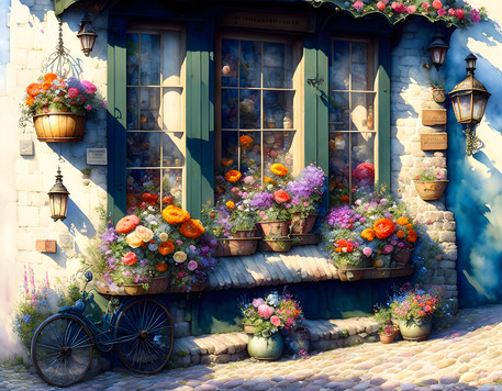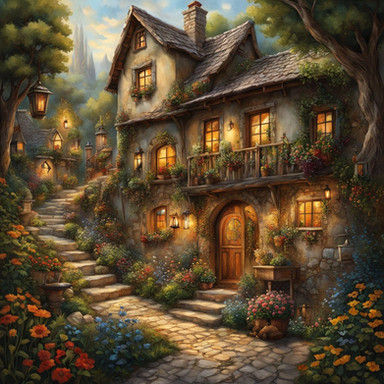 #cobbled #cobblestone #streetlife #citylife #digitialart #dusk #illuminated #illustration #impression #peaceful #streetscene #summertime #village #wallpaper #aiartwork