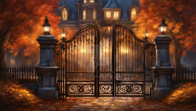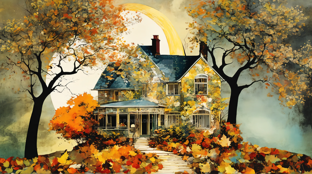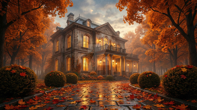 #columns #autumn #autumncolors #brick #citylife #cobblestone #digitalart #illumination #illustration #impression #leaves #streetlife #streetview #trees #village #wallpaper #aiartwork