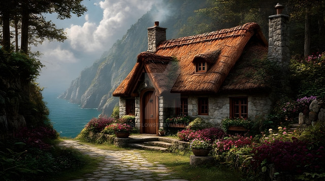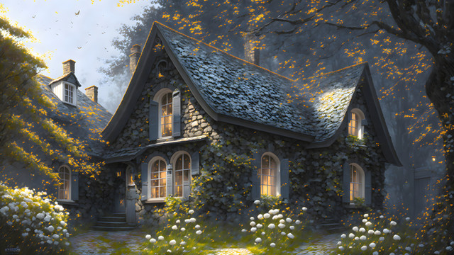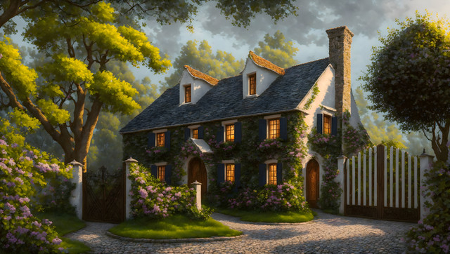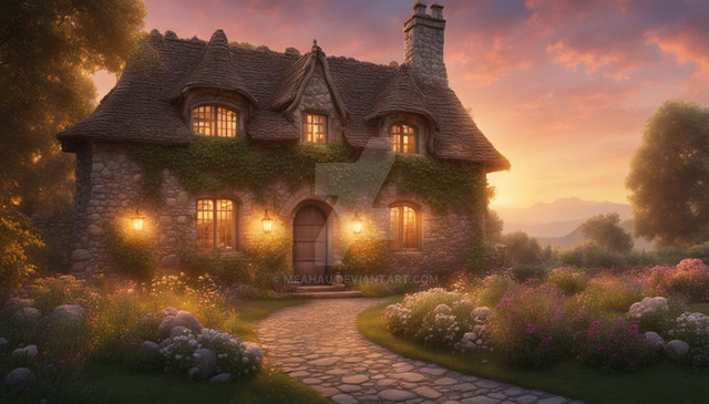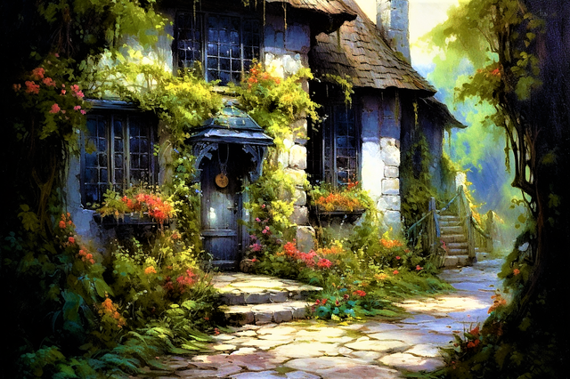 #abode #blooms #cobbled #home #tranquil #cobblestone #digitalart #dusk #idyllic #illustration #impression #peaceful #summertime #village #wallpaper