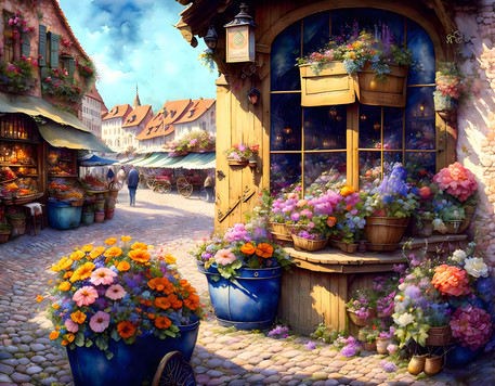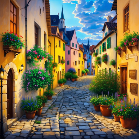 #city #cobblestone #colorful #digitalartwork #digitialart #illustration #impression #interpretative #village #wallpaper #cobbled_street #aiartwork