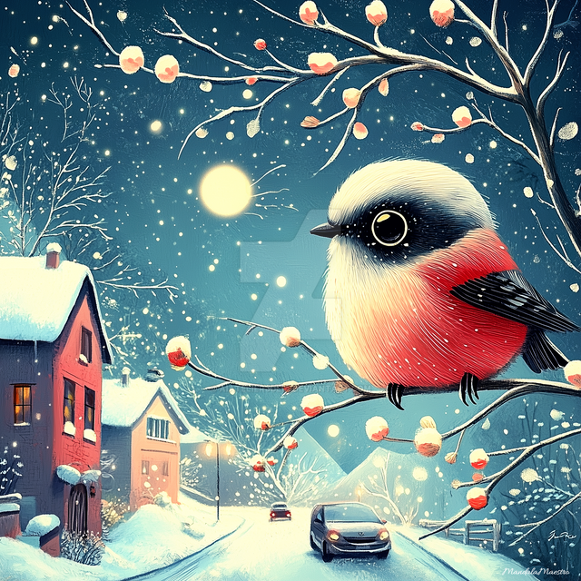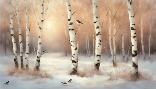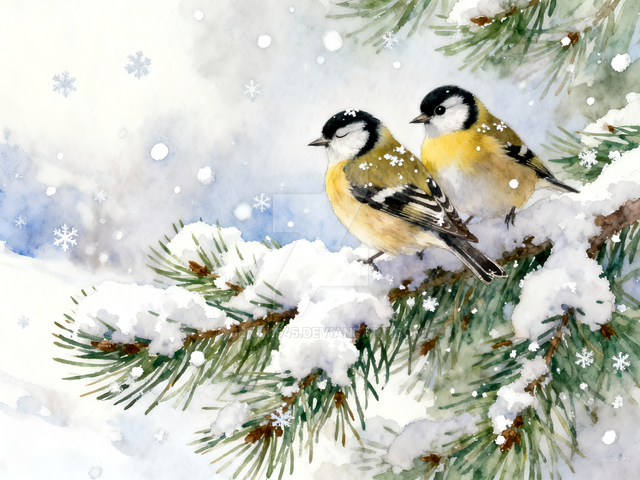 #birds #trees #coldwinter #digitalartwork #finches #illustration #nature #snowing #wallpaper #wildlife #wintertime #birdillustration