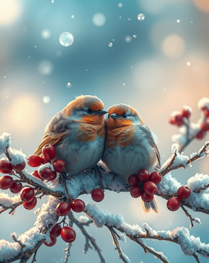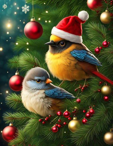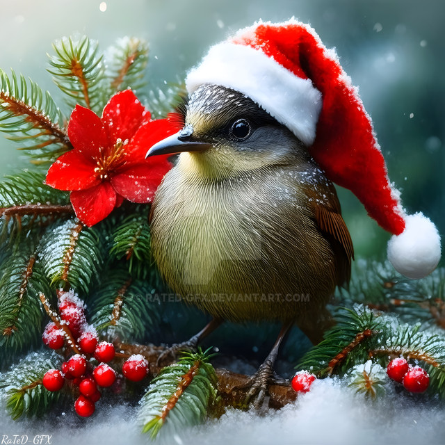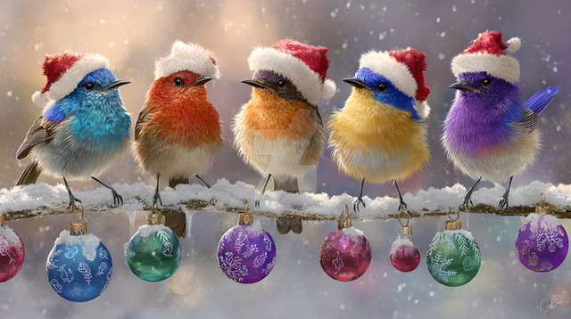 #birds #frolic #jolly #winter #birdsofafeather #christmas #holidayseason #santahat #wallpaper #xmas #birdillustration #snowyscene #holidayschristmas