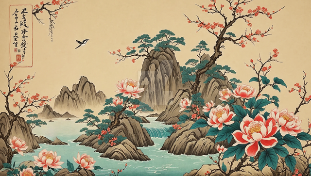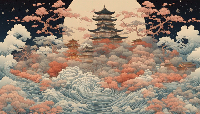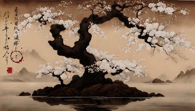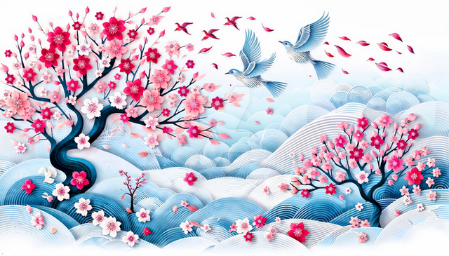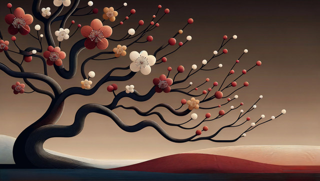 #asian #blossoms #majig #mural #sakura #tree #treeblooms #treeflowers #abstractart #background #conceptart #flowersandplants #illustration #wallart #wallpaper