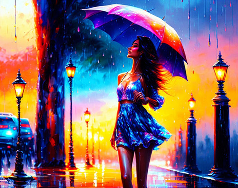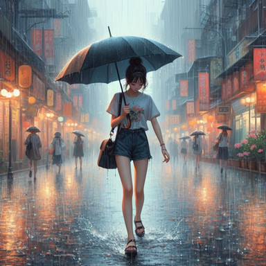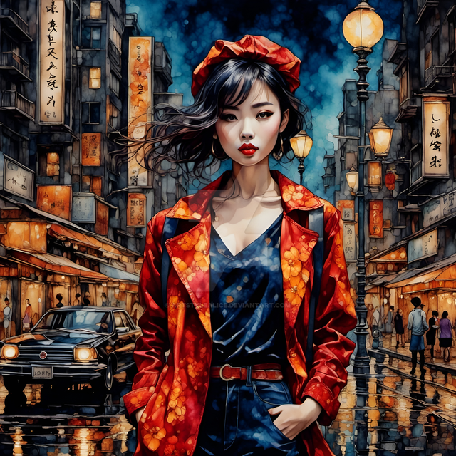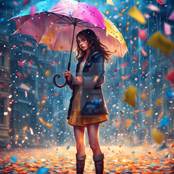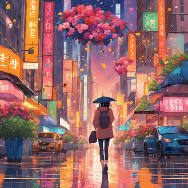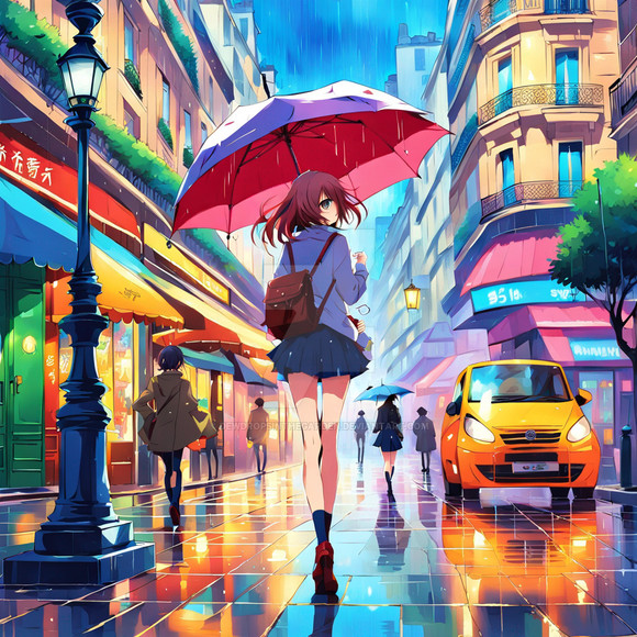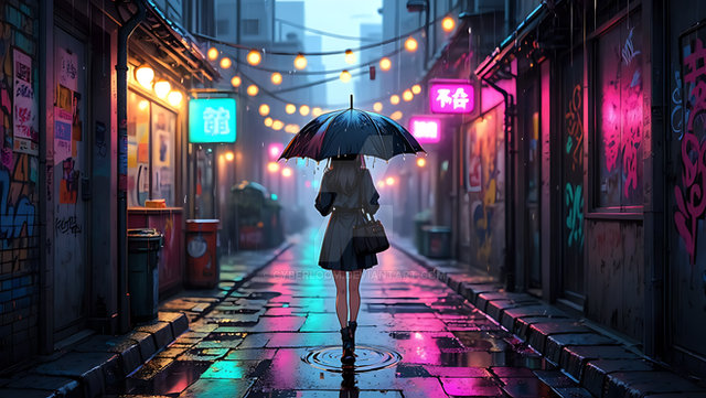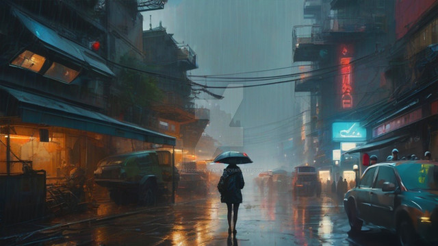 #citylife #colorful #digitalart #illustration #impression #metropolitan #rainyday #rainyweather #streetlife #style #urban #wallpaper #woman #aiartwork