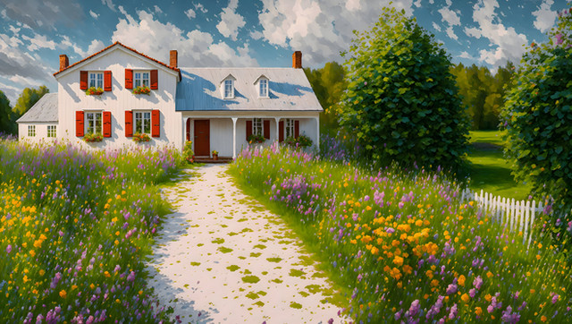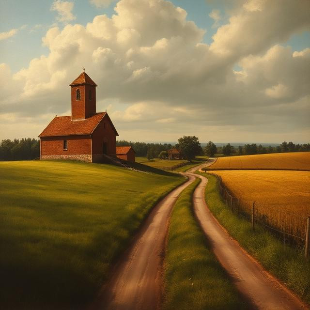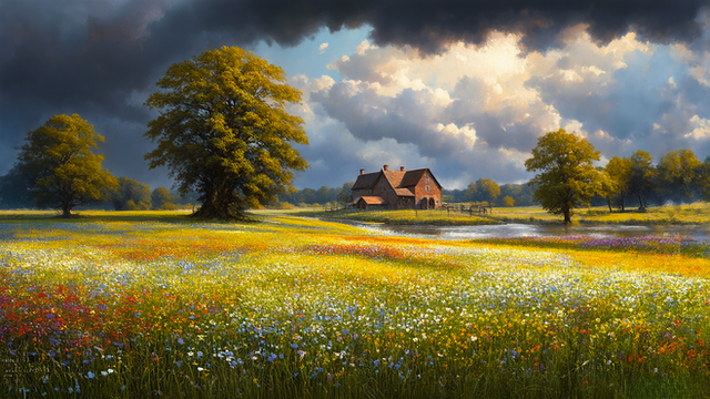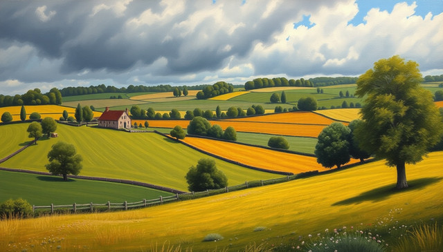 #farm #landscape #manor #meadow #rural #rustic #colorful #countryside #digitalartwork #farmhouse #illustration #minimalistic #rurallandscape #summertime #wallpaper