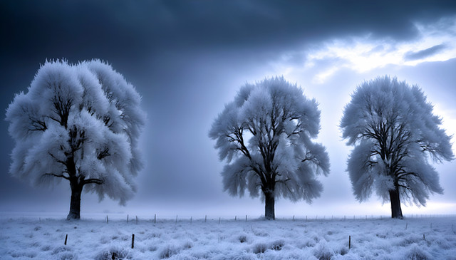#icy #snowpack #digitalartwork #illuminated #illustration #meadow #nighttime #snowytrees #trees #wallpaper #winterlandscape #snowyscene #snowyforest
