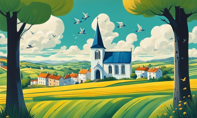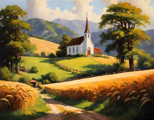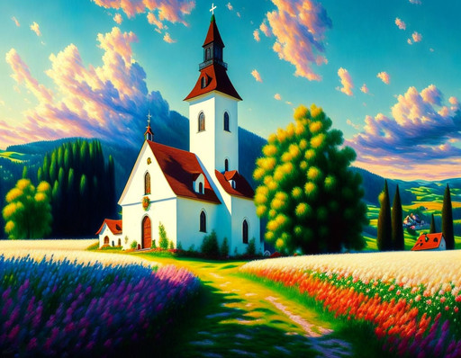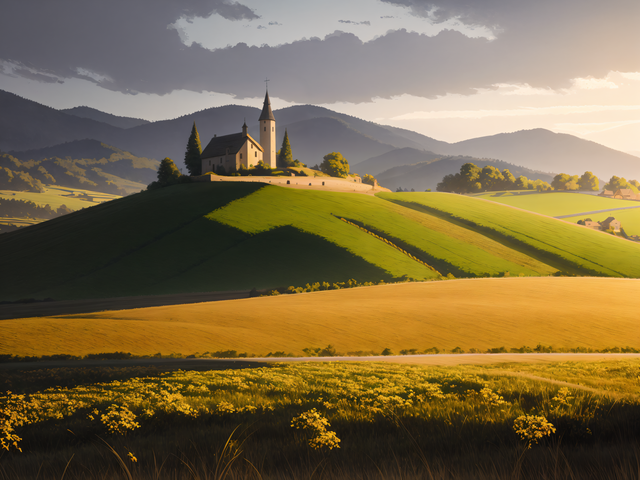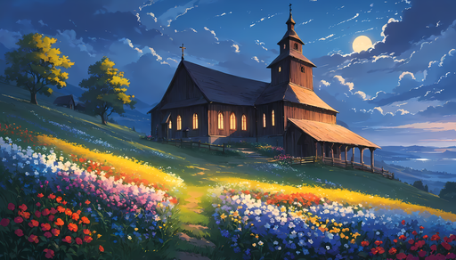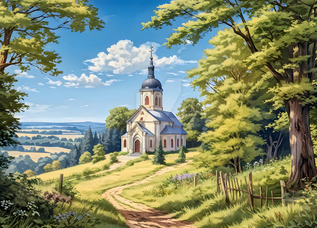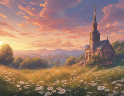 #abby #bloom #church #hilltop #meadow #rustic #scenic #summer #countryside #digitalartwork #grassland #illustration #landscape #monastery #nature #prairie #summertime #wallpaper #widescreen #meadowflowers