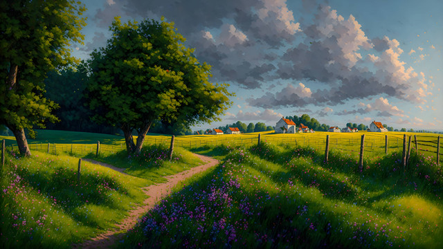 #countryside #farm #grassland #outskirts #ranch #rural #western #fencerow #colorful #digitaart #illustration #meadow #plains #prairie #rurallandscape #rustic #scenic #wallpaper #ruralscenery #countrysidescenery