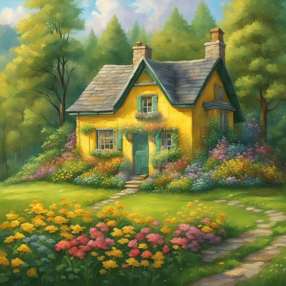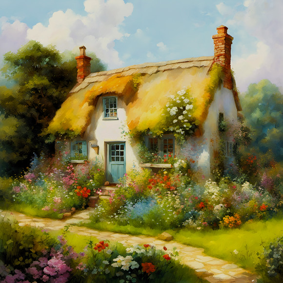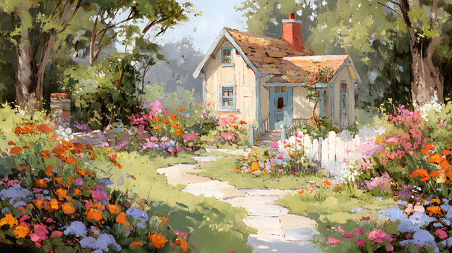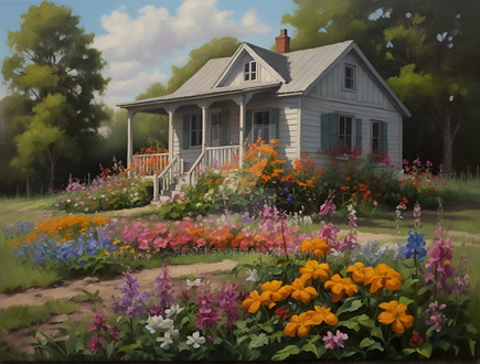 #abode #blooms #cottage #shutters #colorful #country #countryside #digitalartwork #flowers #idyllic #illustration #rural #simplelife #summer #wallpaper #ruralscenery