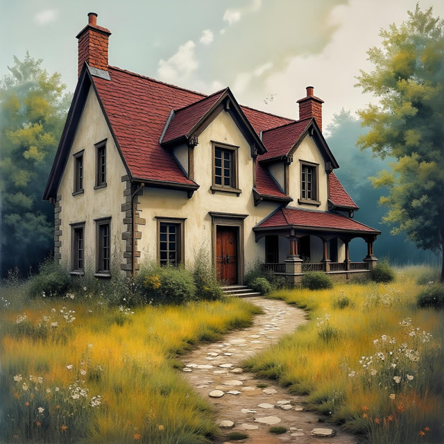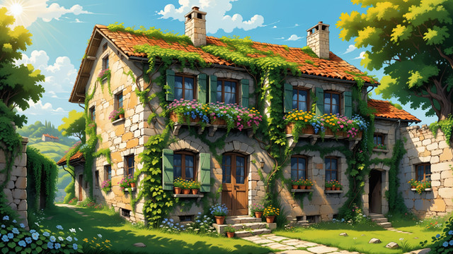 #autumn #cottage #estate #shutters #village #abode #autumnleaves #cobblestone #colorful #digitalartwork #idyllic #illustration #impression #manor #rural #serene #wallpaper