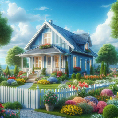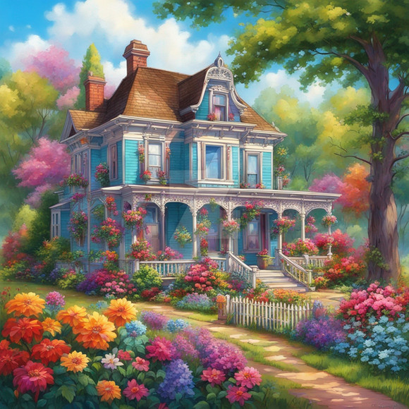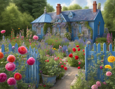 #cottage #flowers #manor #rural #bloomingflowers #colorful #countryside #digitalart #farmhouse #illustration #impression #summer #village #wallpaper #ruralscenery