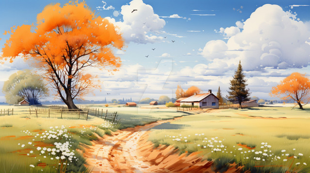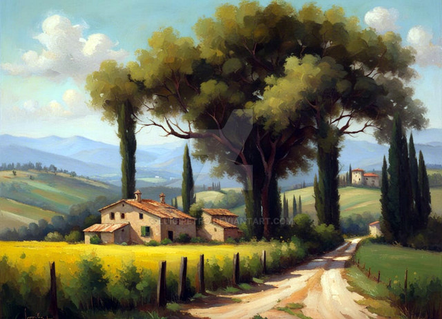 #blooms #hilltop #nature #summer #clearsky #colorful #countryside #illustration #impression #landscape #sunnyday #treeslandscape #wallpaper #ruralscenery #digitlart