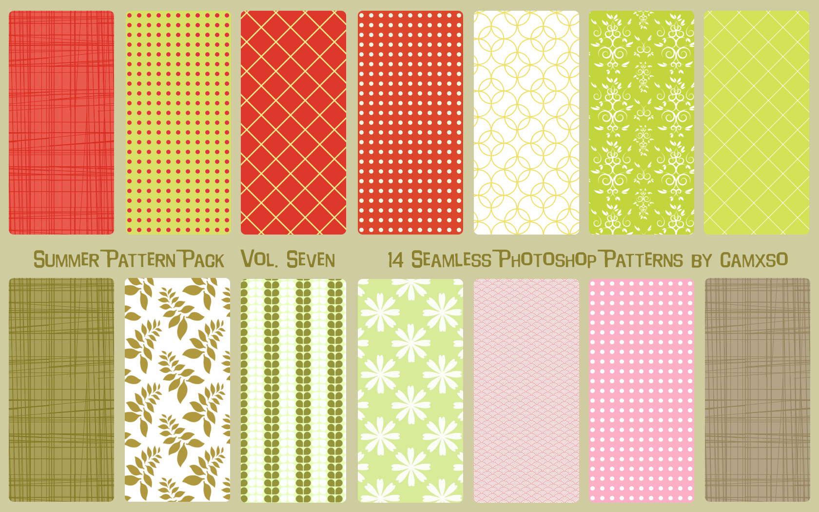Vol. 7 of 8 Summertime Seamless Tiling Pattern Packages. You may use these however you wish. The only thing I ask is that you do not alter them for other deviations of the exact nature. Enjoy! CamxsoRelated content