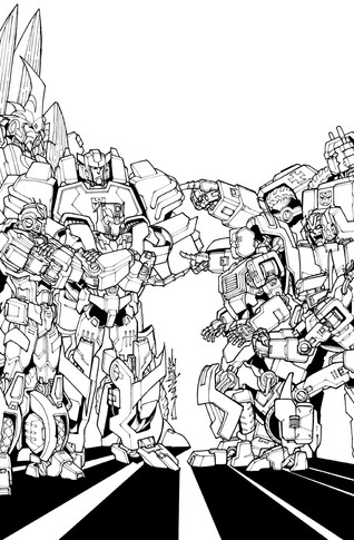 What do you do when you need to kill some superpowerful mechanoid? You assemble a team of the toughest badasses you can find across the multiverse.Left to right: Detritus, Timelines Astrotrain and Animated Lockdown.