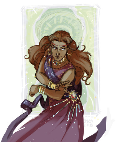 This character feels really alive. That step forward while looking back has an energy about it-like a huge, hesitant step forward.Β Not to mention the costume design, which I absolutely love.Β