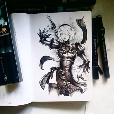 2B from NieR: Automata. Сolored version of NSFW version and progress shots is available on my Patreon at the beginning of the next month.If you want to see other of my bw sketches in color please help me to reach my goal on Patreon!
