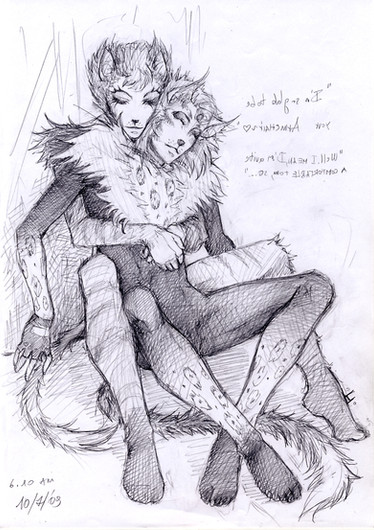 Awwww! That is sooooo sweet! I know it may seem childish, but it looks as if Misto just had a nightmare and Tugger is comforting him. Beautiful and so sweet! LOVE it!