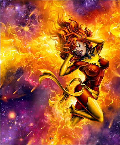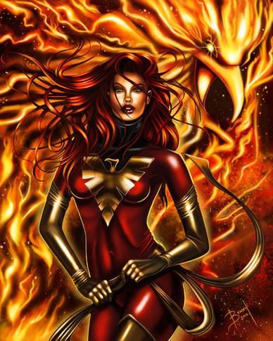 Beautiful piece, the pose and her expression are dazzling, I love how you have Jean and the Pheonix gazing at one another.