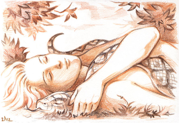 Hoo, I just love the snake (nice work with scales) and plants... Though, that man scares me... for some strange reason I get cold wibes from him...