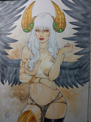 #videogamefanart #traditionalart #originalcharacter #magic #characterdesign #warrior #bigboobs #commission #markers #sexygirl #patreonreward
