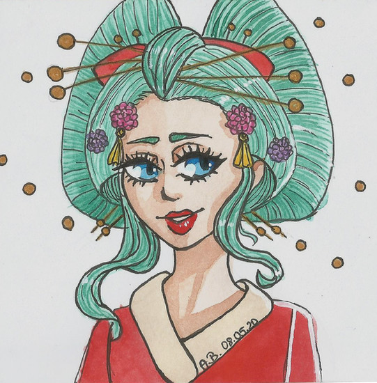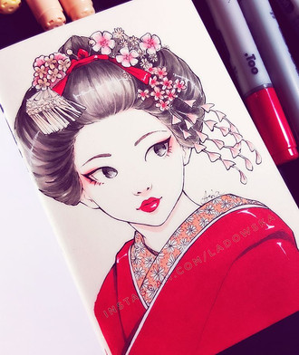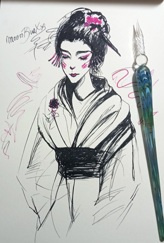 #fur #geisha #ink #kimono #markers #pink #sketch #sketchbook #sketches #traditional #patreonrewards